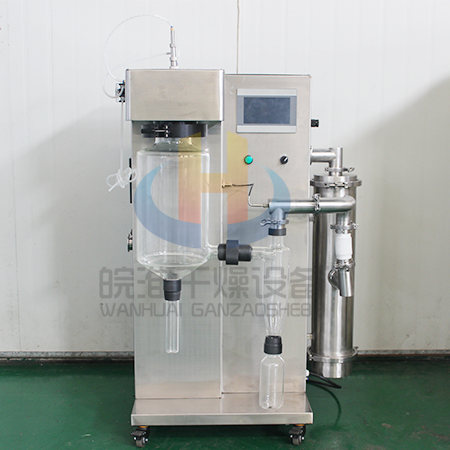 小型噴霧干燥機適用于高校、研究所和食品醫(yī)藥化工企業(yè)實驗室生產微量顆粒粉末,對所有溶液如乳濁液、懸浮液具有不錯的適用性, 適用于對熱敏感性物的干燥如生物制品、生物農藥、酶制劑等。因為所噴出的物料只是在噴成霧狀時才受到高溫且是瞬間受熱,故這些活性材料在干燥后仍維持其活性成份不變。
