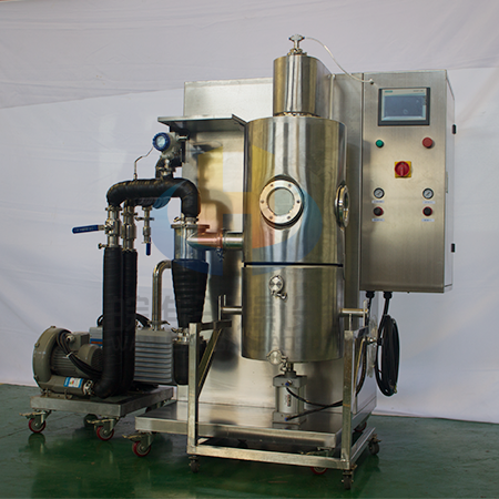 低溫噴霧干燥機(jī)實(shí)驗(yàn)室冷凍噴霧干燥機(jī)適用于熱敏性、粘稠性、活性物料及含糖量高的物料的低溫干燥,如中草藥天然產(chǎn)物提取液、乳制品、生物制劑、酶制劑、水果原汁、高分子材料等。